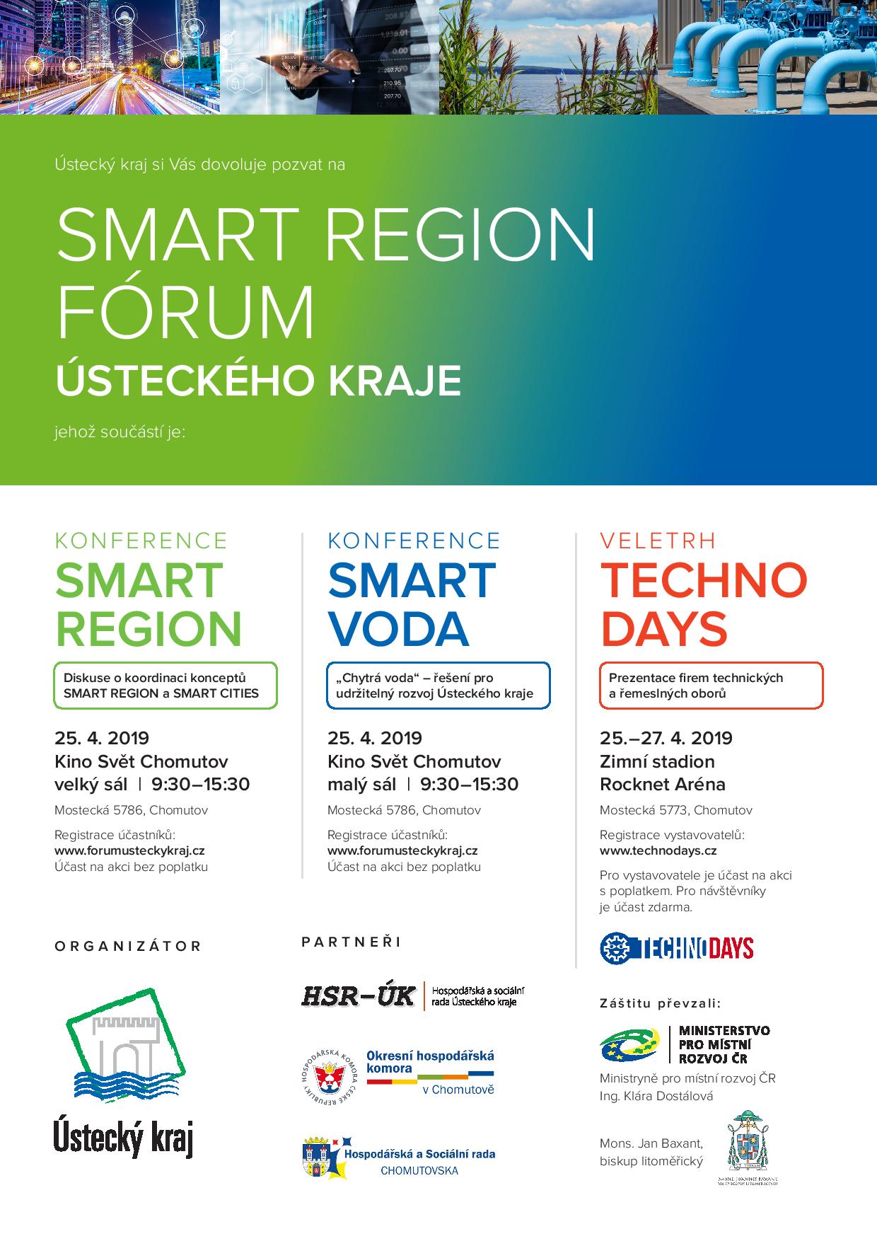 Jménem Ústeckého kraje a jeho partnerů si Vás dovolujeme pozvat na SMART REGION FÓRUM Ústeckého kraje, které je určeno zástupcům obcí, měst, podniků, firem, sociálních partnerů a všem ostatním, které zajímají „chytrá řešení“ pro budoucnost kraje.