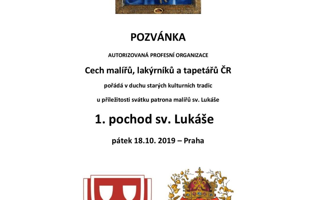 1. pochod sv. Lukáše Cech malířů, lakýrníků a tapetářů ČR pořádá 18.10.2019 v duchu starých kulturních tradic u příležitosti svátku patrona malířů sv. Lukáše 1. pochod sv. Lukáše Program: 14:00 přednáška Sv. Lukáš a cechovní oltáře v době barokní v Týnském chrámu +...