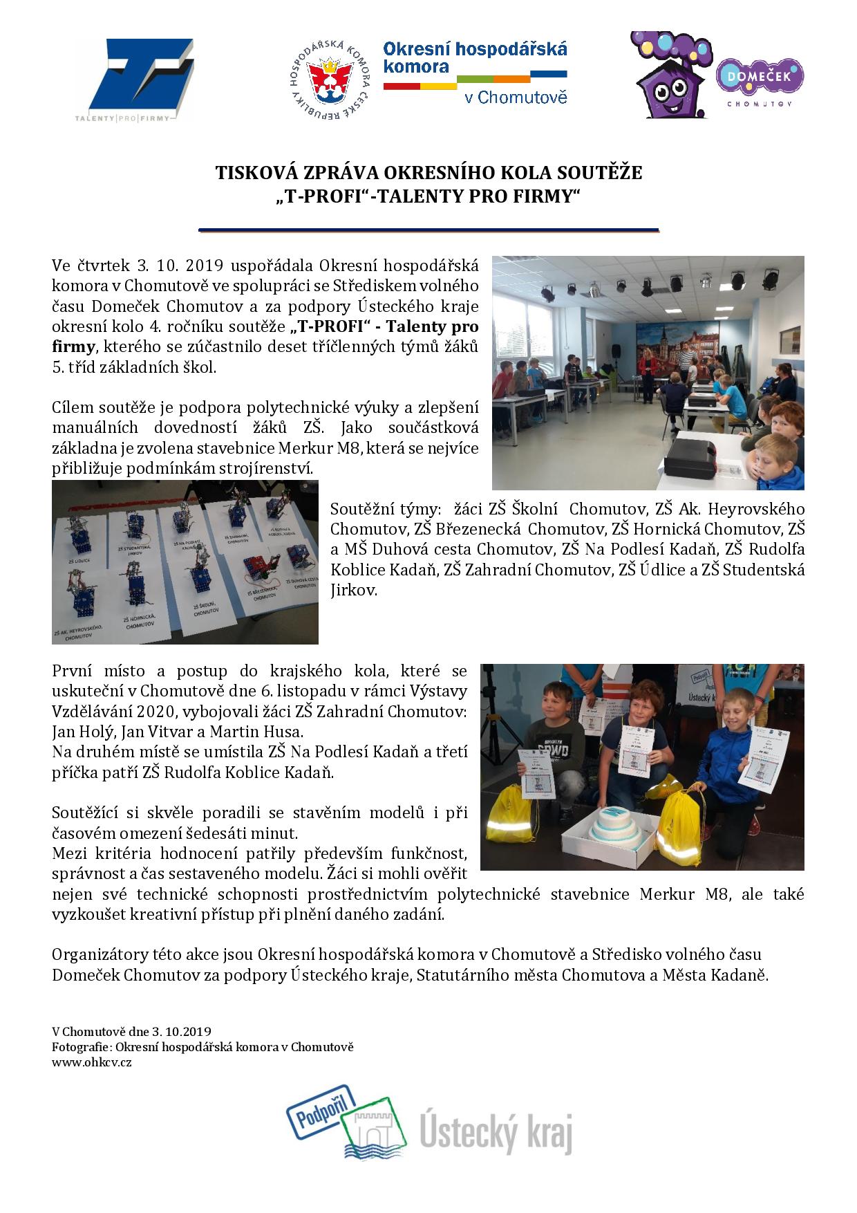 Okresní kolo 4.ročníku soutěže „T-PROFI“ – Talenty pro firmy