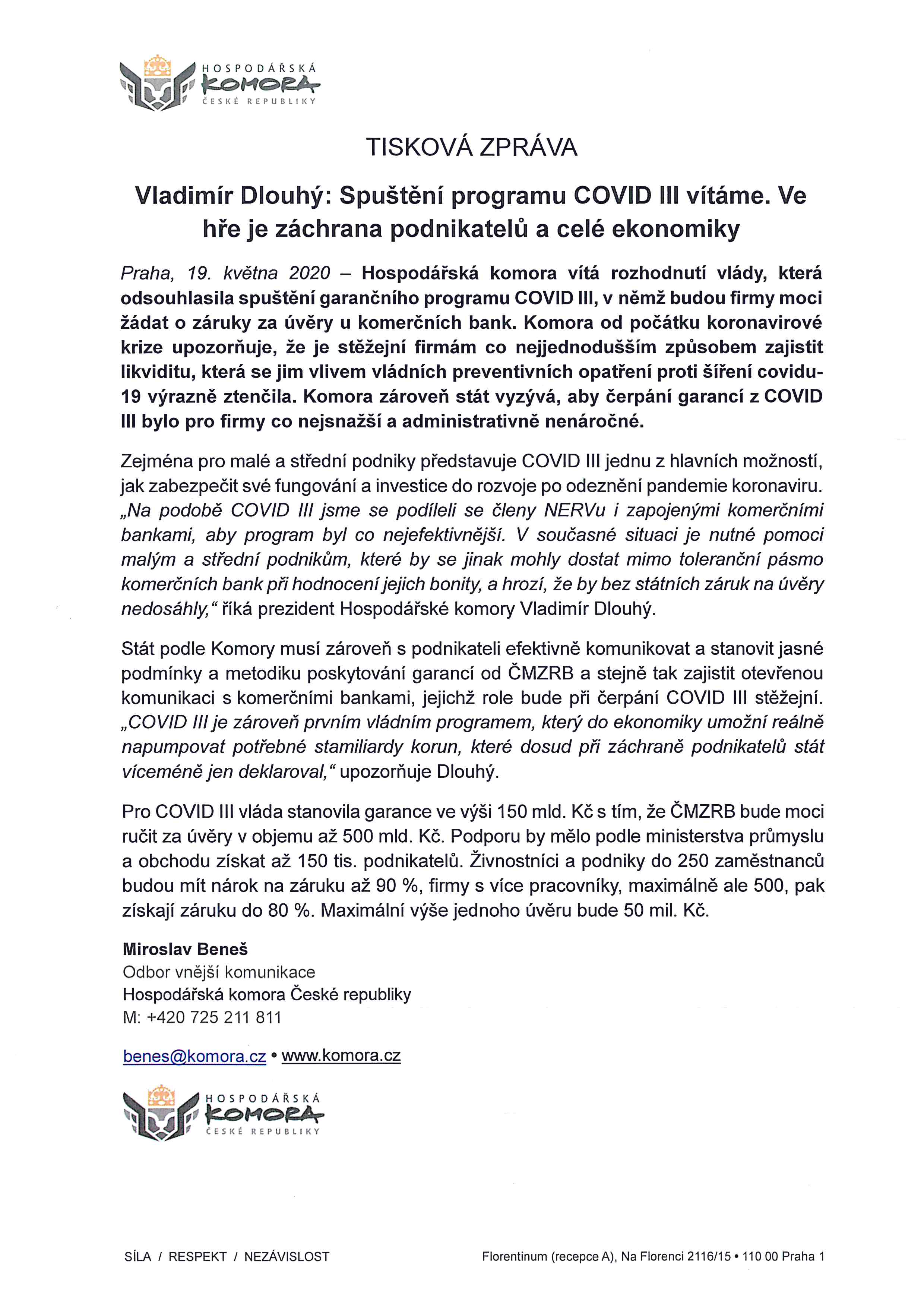 Parametry programu COVID III : https://www.komora.cz/news/vlada-schvalila-zarucni-program-covid-iii-pro-firmy-zasazene-koronavirem/
