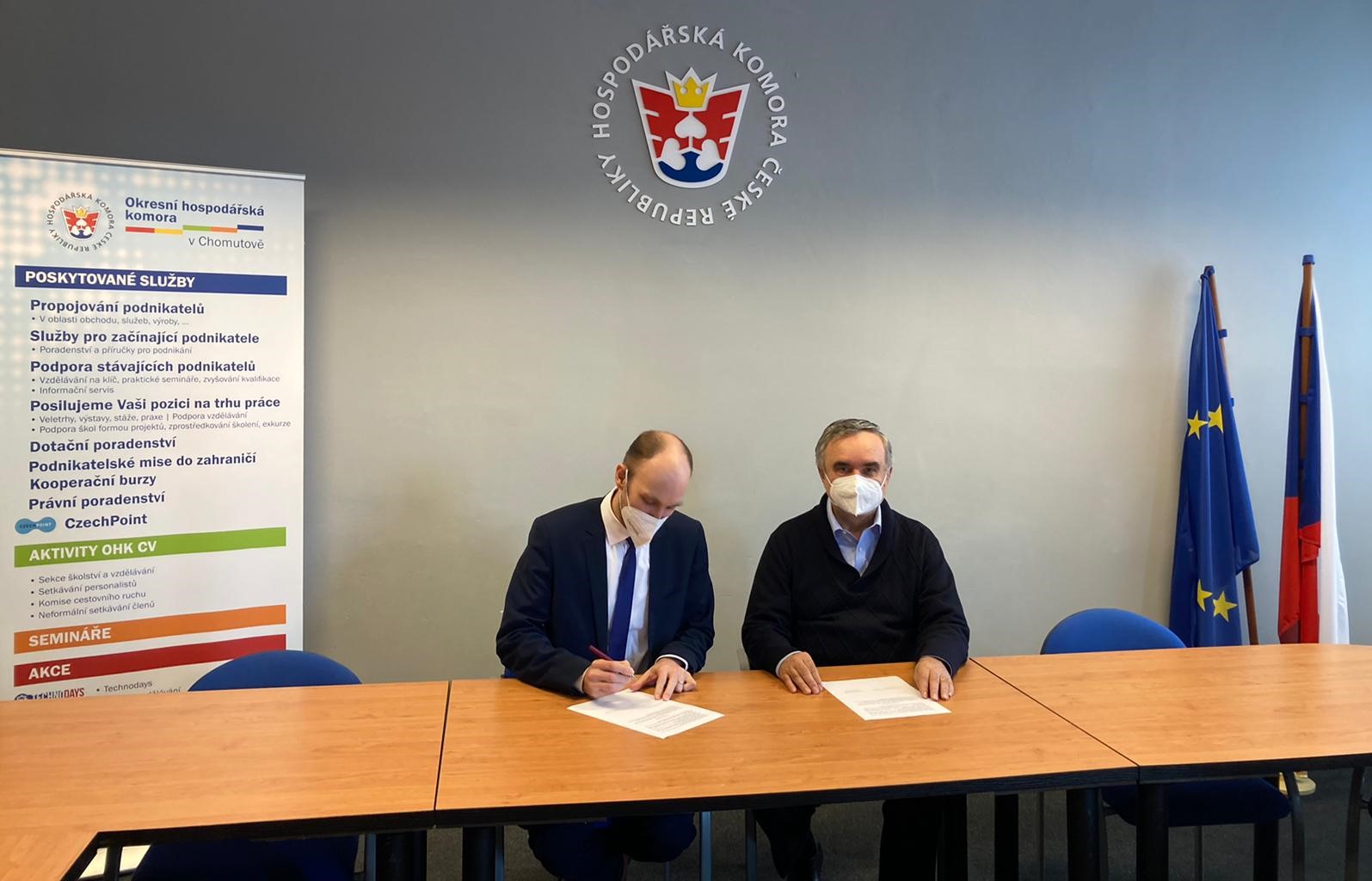 Dnes byla podepsána Dohoda o spolupráci mezi Okresní hospodářskou komorou v Chomutově a Euroregionem Krušnohoří.
