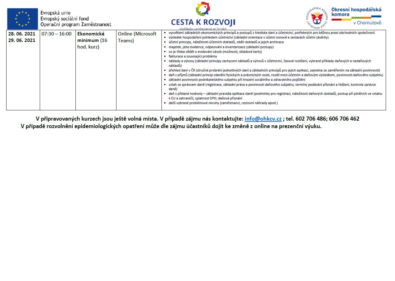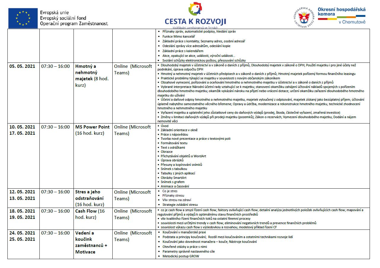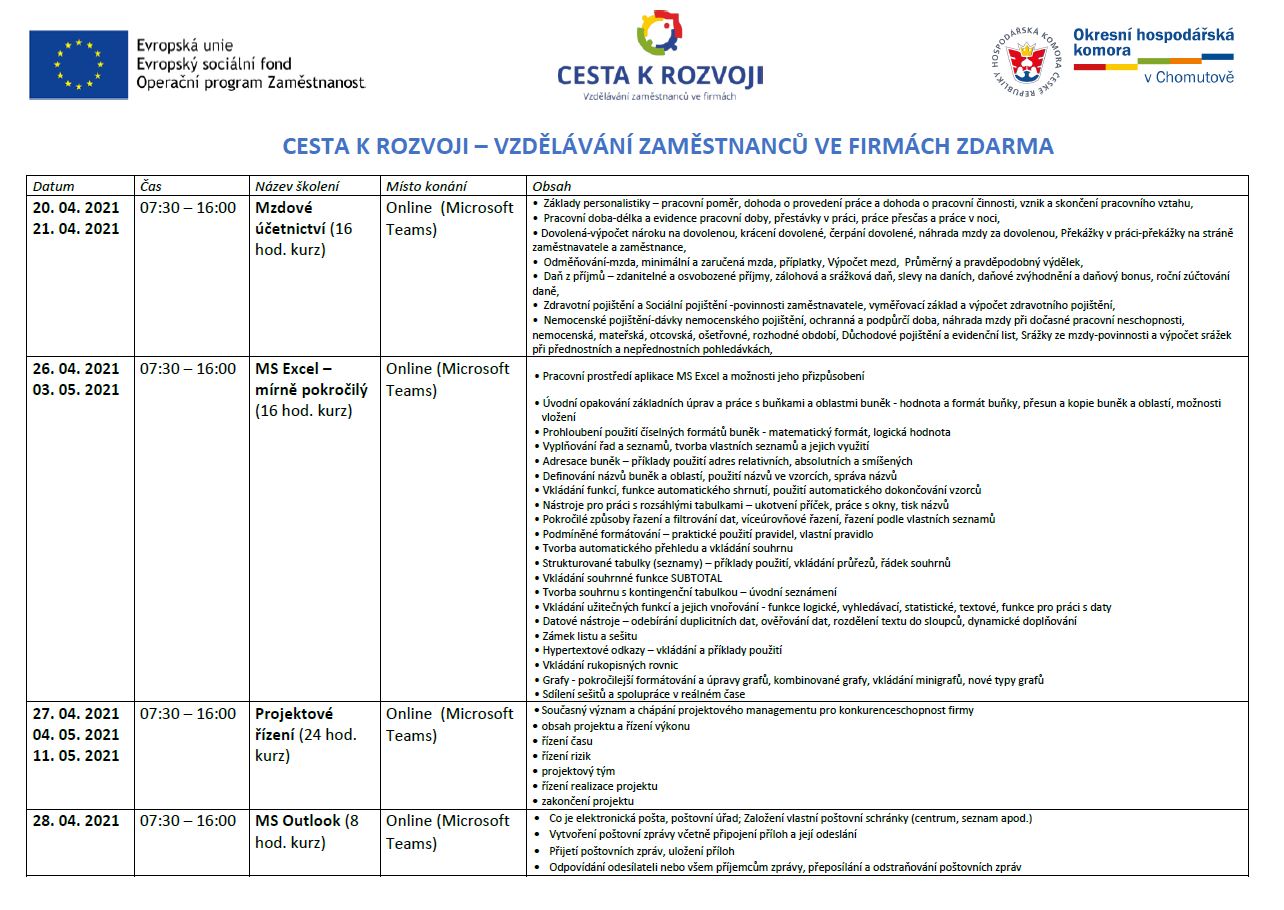 VZDĚLÁVÁNÍ ZAMĚSTNANCŮ ZDARMA 04-06/2021
