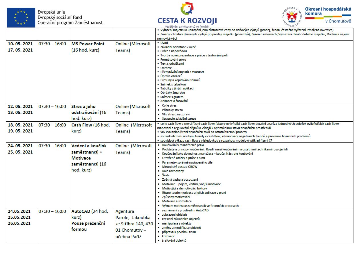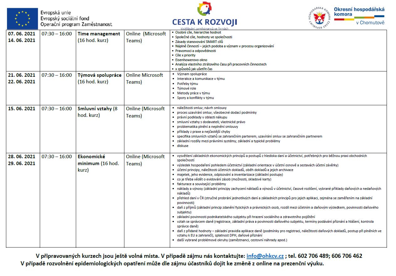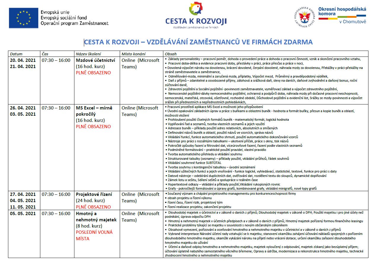 Harmonogram vzdělávání zaměstnanců ZDARMA