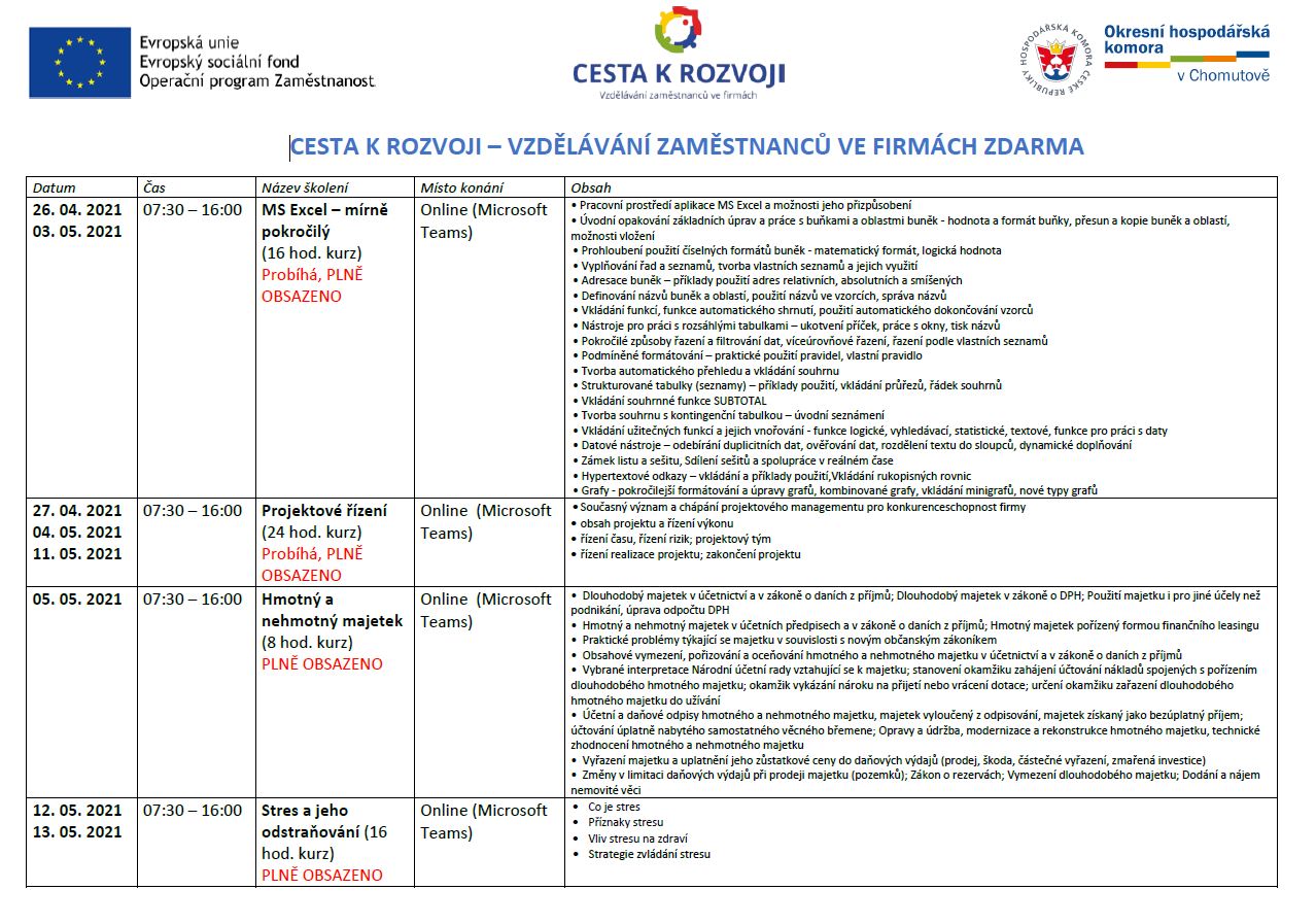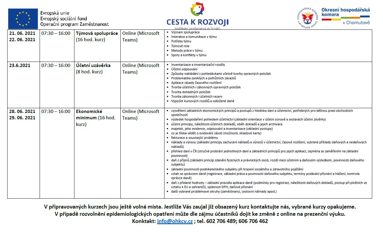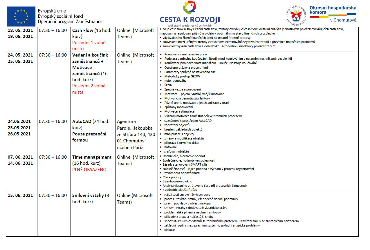 Aktuální harmonogram vzdělávacích kurzů ZDARMA