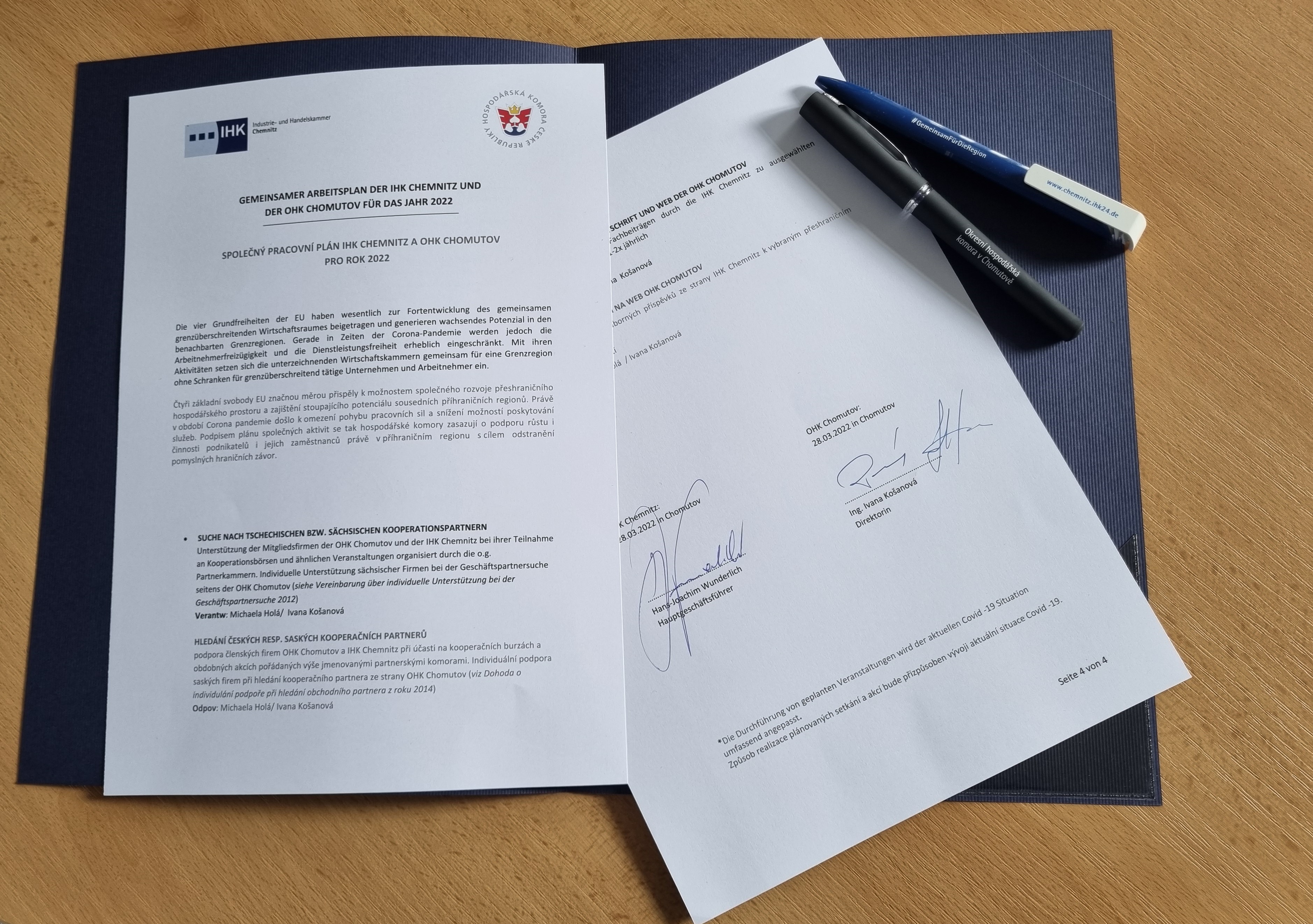 Dne 28. března 2022 proběhl podpis společných pracovních plánů aktivit pro přeshraniční spolupráci zástupců IHK Chemnitz se zástupci Okresní hospodářské komory v Chomutově, Okresní hospodářské komory Most,  Okresní hospodářské komory  Ústí nad Labem a  Krajské hospodářské komory Karlovarského kraje.