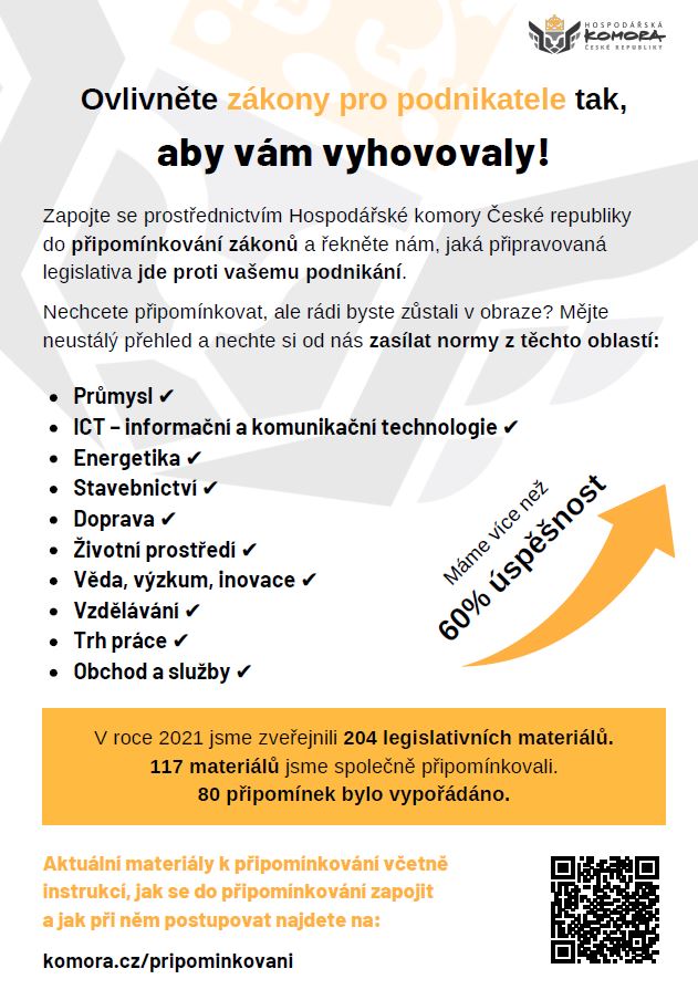 Zapojte se prostřednictvím Hospodářské komory České republiky do připomínkování zákonů a řekněte nám, jaká připravovaná legislativa jde proti vašemu podnikání.