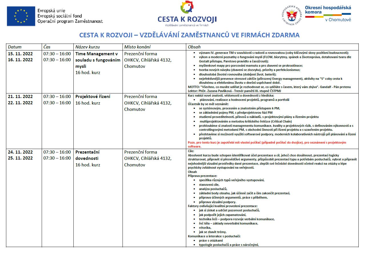 CESTA K ROZVOJI – VZDĚLÁVÁNÍ ZDARMA – NOVÁ NABÍDKA KURZŮ: