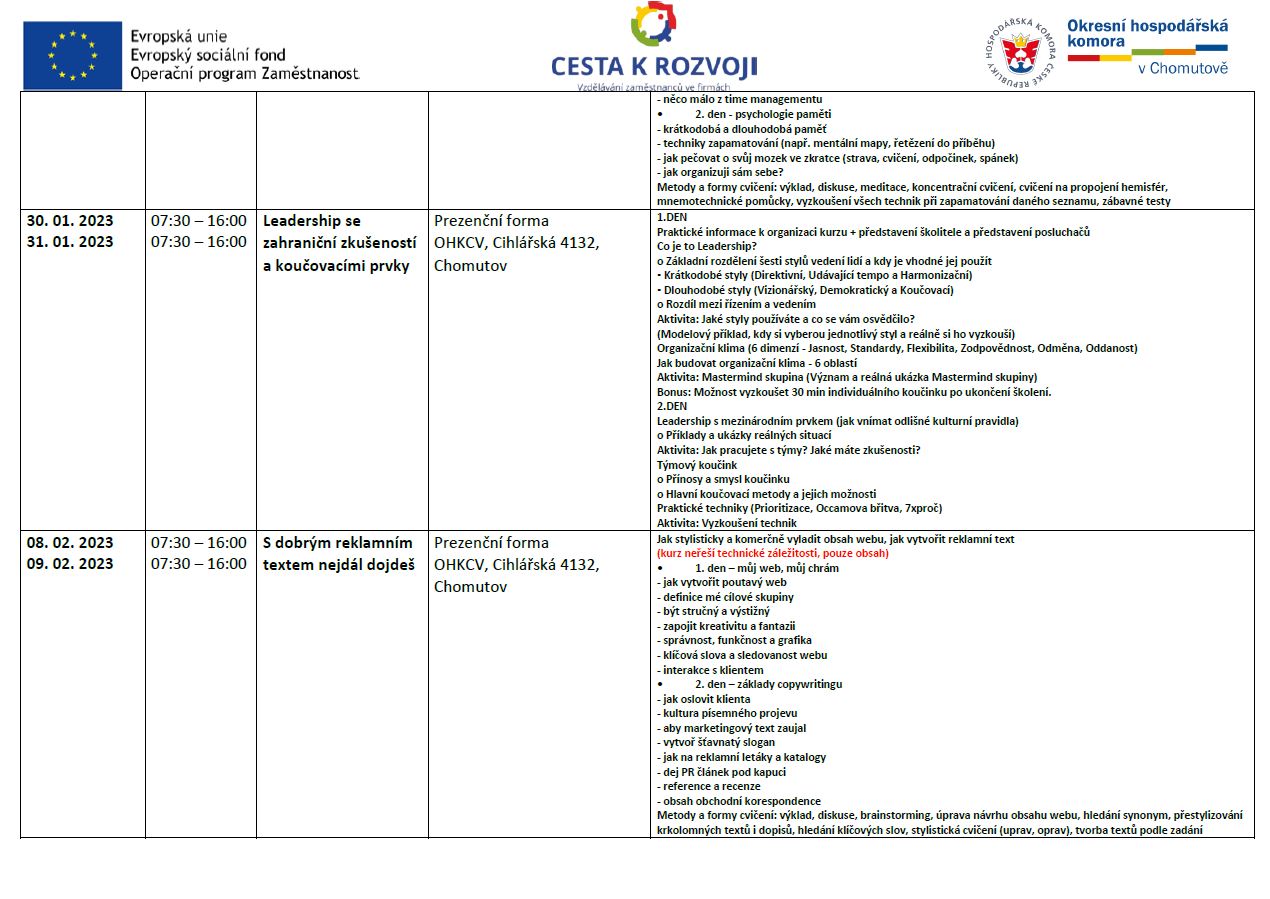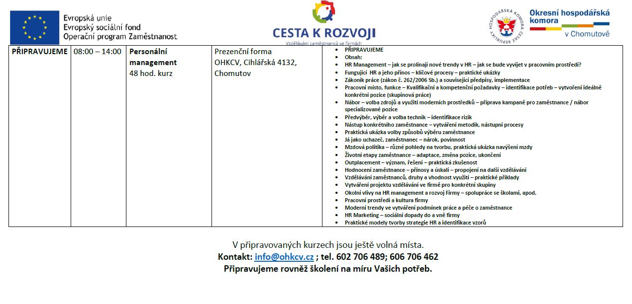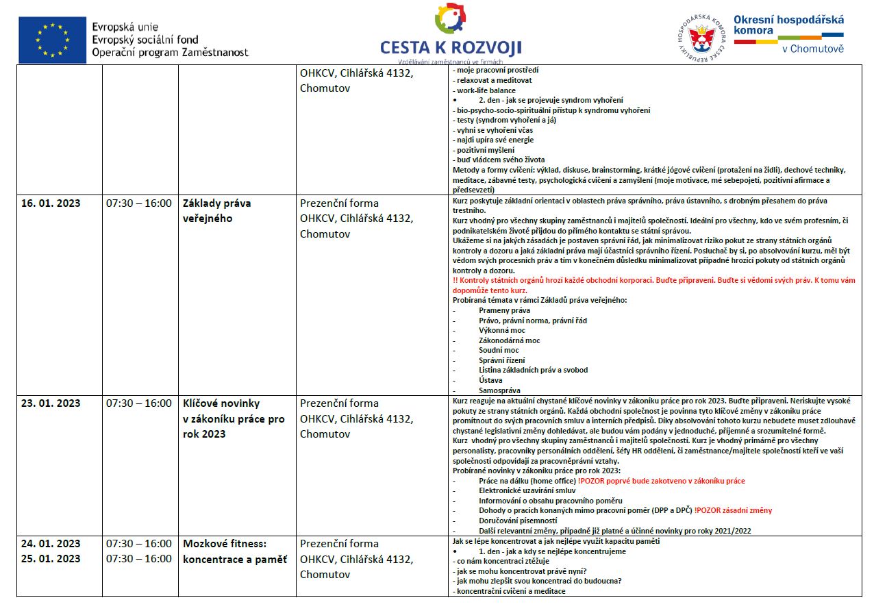 HARMONOGRAM NOVÝCH KURZŮ PRO ZAMĚSTNANCE FIREM