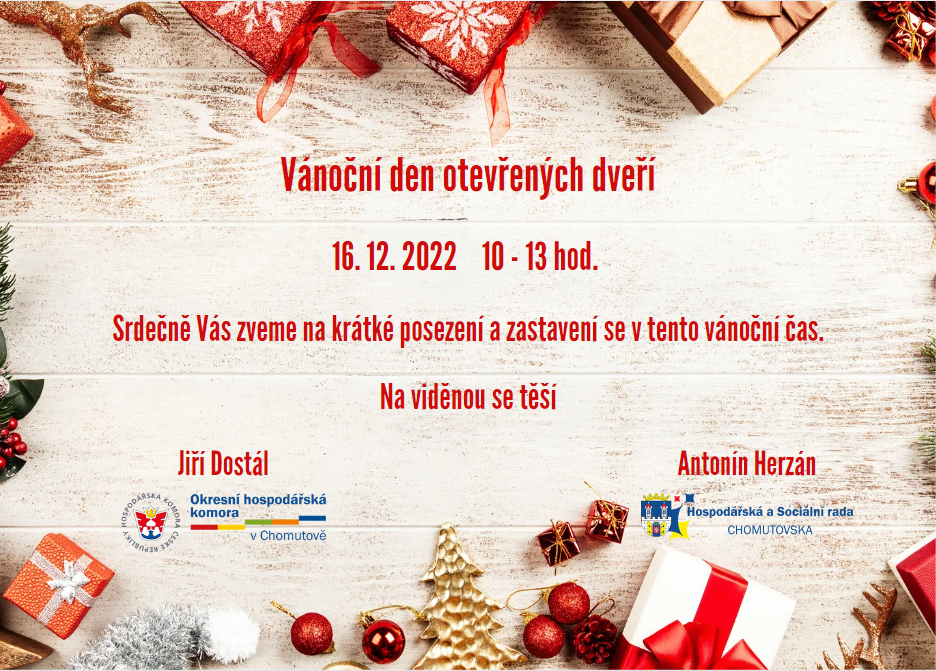 přijměte pozvání na Vánoční den otevřených dveří dne 16.12.2022 od 10 do 13 hodin.
