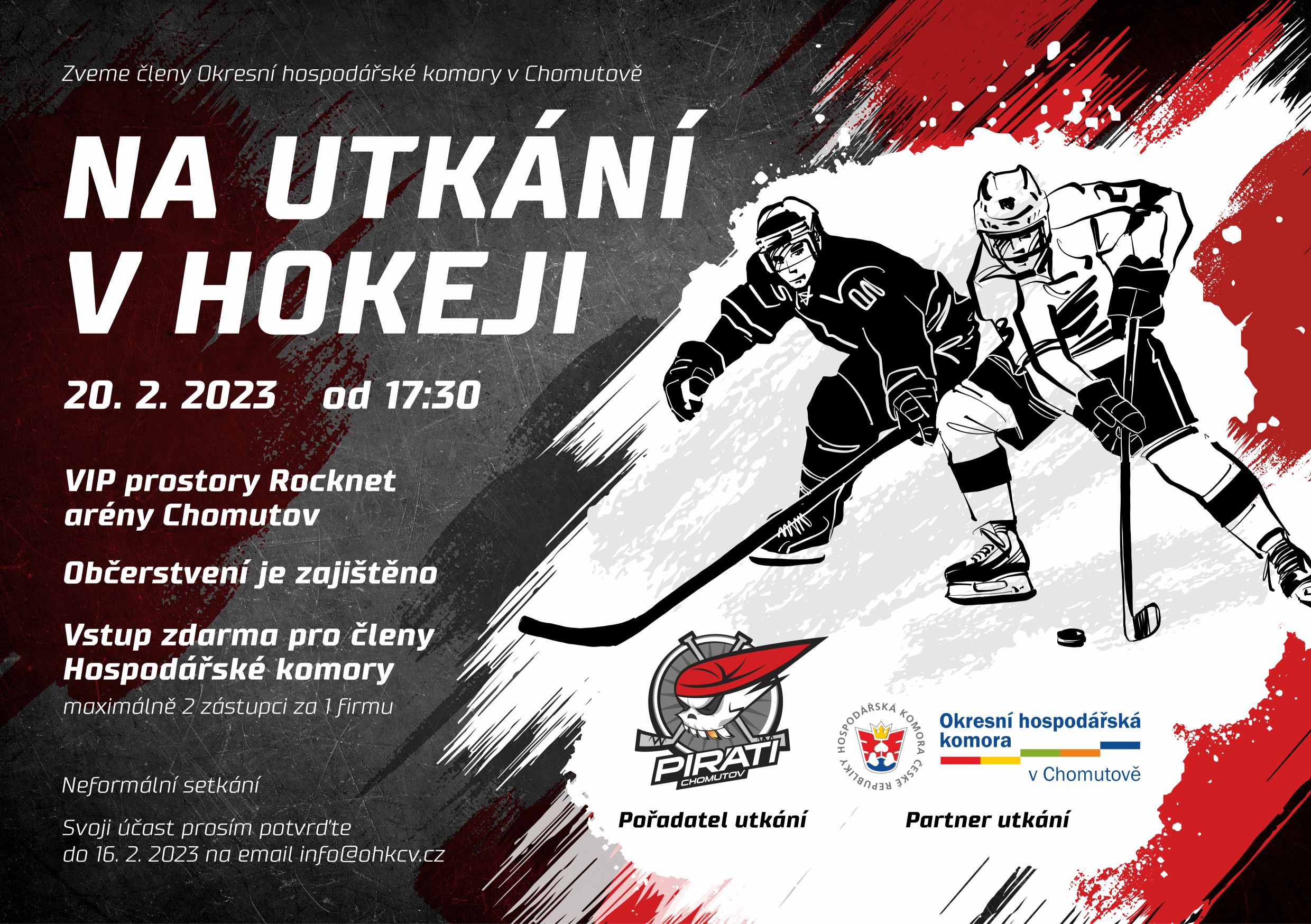Dne 20.02.2023 od 17:30 hod. zveme členy OHK v Chomutově na utkání v hokeji!