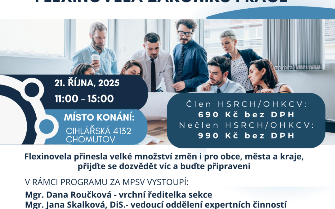 Flexinovela zákoníku práce přináší od 1. 1. 2026 řadu zásadních změn i pro samosprávy. Přijďte se dozvědět, co vše se Vás týká a jak se na nové povinnosti připravit.